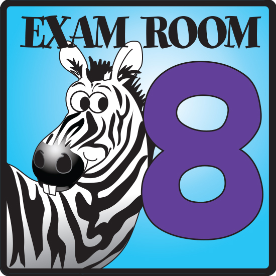 Exam Room 8 is part of a series of exam room signs, designed exclusively by Clinton Industries for pediatric offices and clinics.