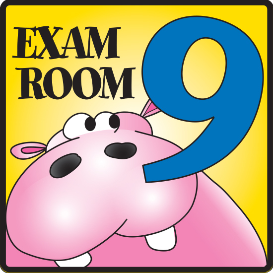 Exam Room 9 is part of a series of exam room signs, designed exclusively by Clinton Industries for pediatric offices and clinics.